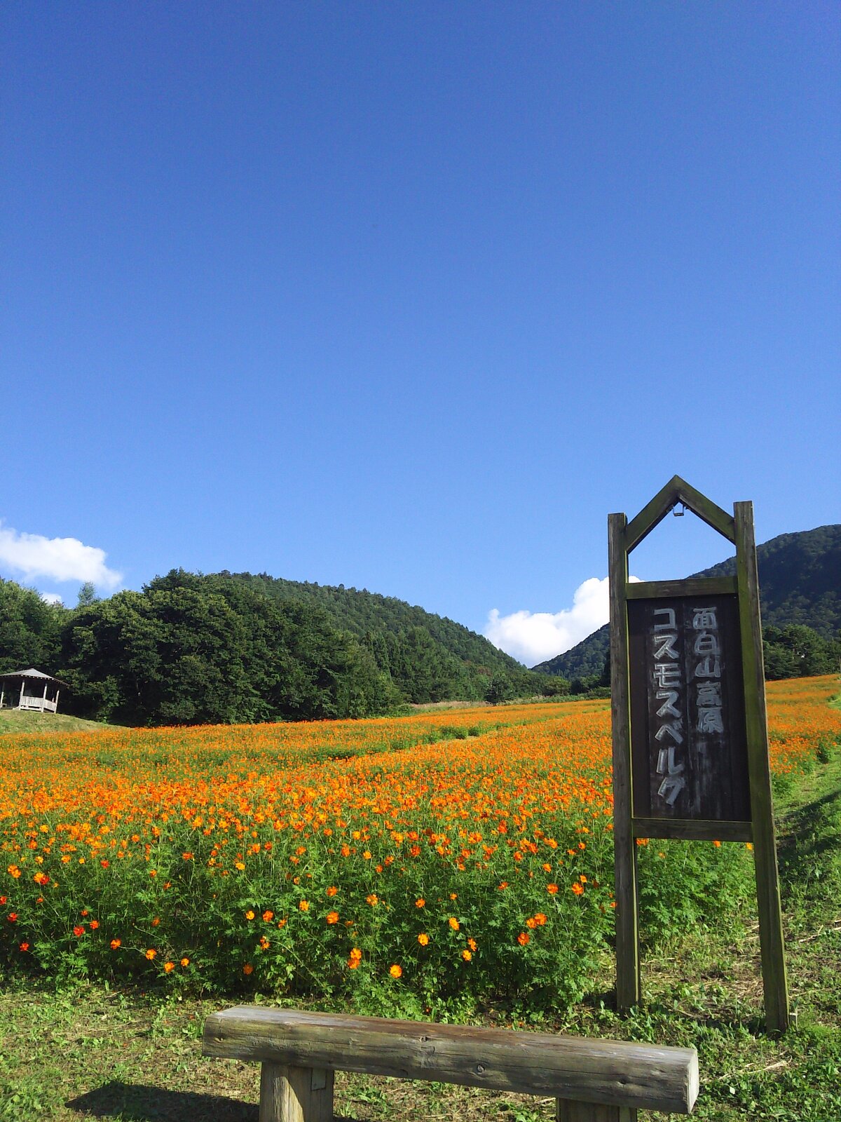 「面白山コスモスベルグ」は、山形県山形市と宮城県仙台市太白区の県境に位置する標高1264.4mの火山「面白山」の麓に広がるコスモス畑です。