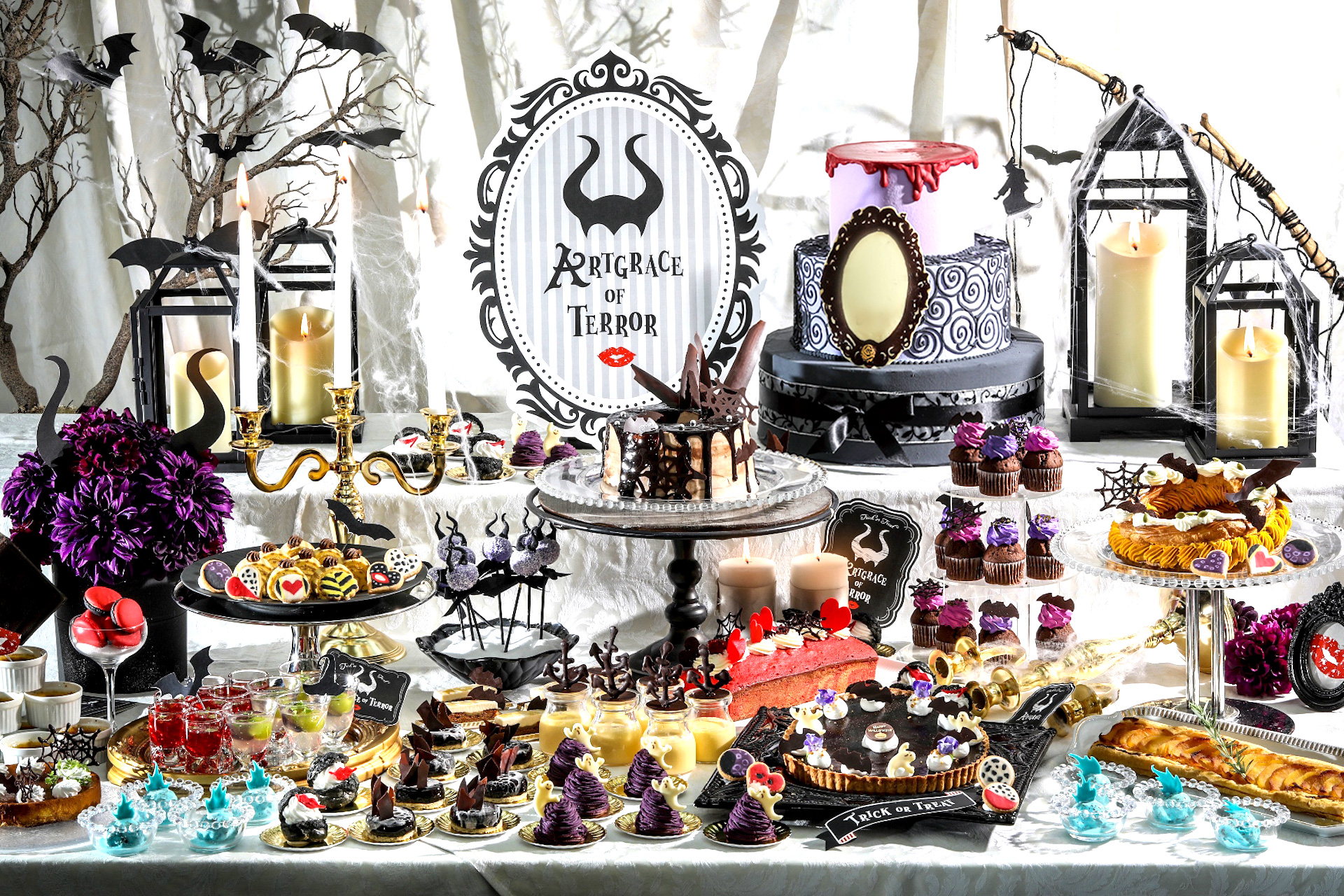 東京ベイの会場では「悪戯ヴィランズたちのデザートタイム」と題し、さまざまな物語に登場する悪役たち「ヴィランズ」をフューチャーしたデザートブッフェが登場。ヴィランモチーフが駆使された、至極のスイーツが勢ぞろいしています。
