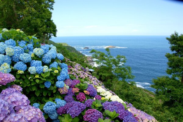 南国・宮崎県の「桃源郷岬」は、80種200万本という圧倒的な規模を誇るあじさいスポット。日向灘が織りなす青い海を背景に咲き誇る様子は、まさに南国ならではの華やかさです。