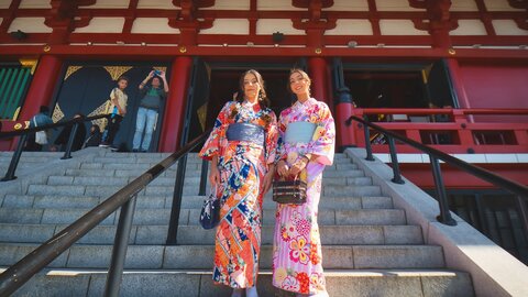 レンタル着物店で着物に着かえ、とても楽しそうに東京見物を楽しんでいました。もちろん、SNSでつながって、これからも友達でいようと言って別れました。