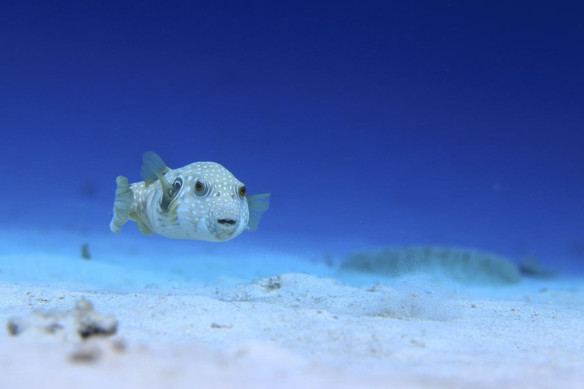 昔阿嘉島にポンタと呼ばれるサザナミフグがいて、大人気だったらしい。餌付けされていたようだけど、ダイバーが潜っているとどこからともなく現れてみんなを楽しませたとのこと。そのポンタも、1994年8月ごろから行方不明になったらしい。