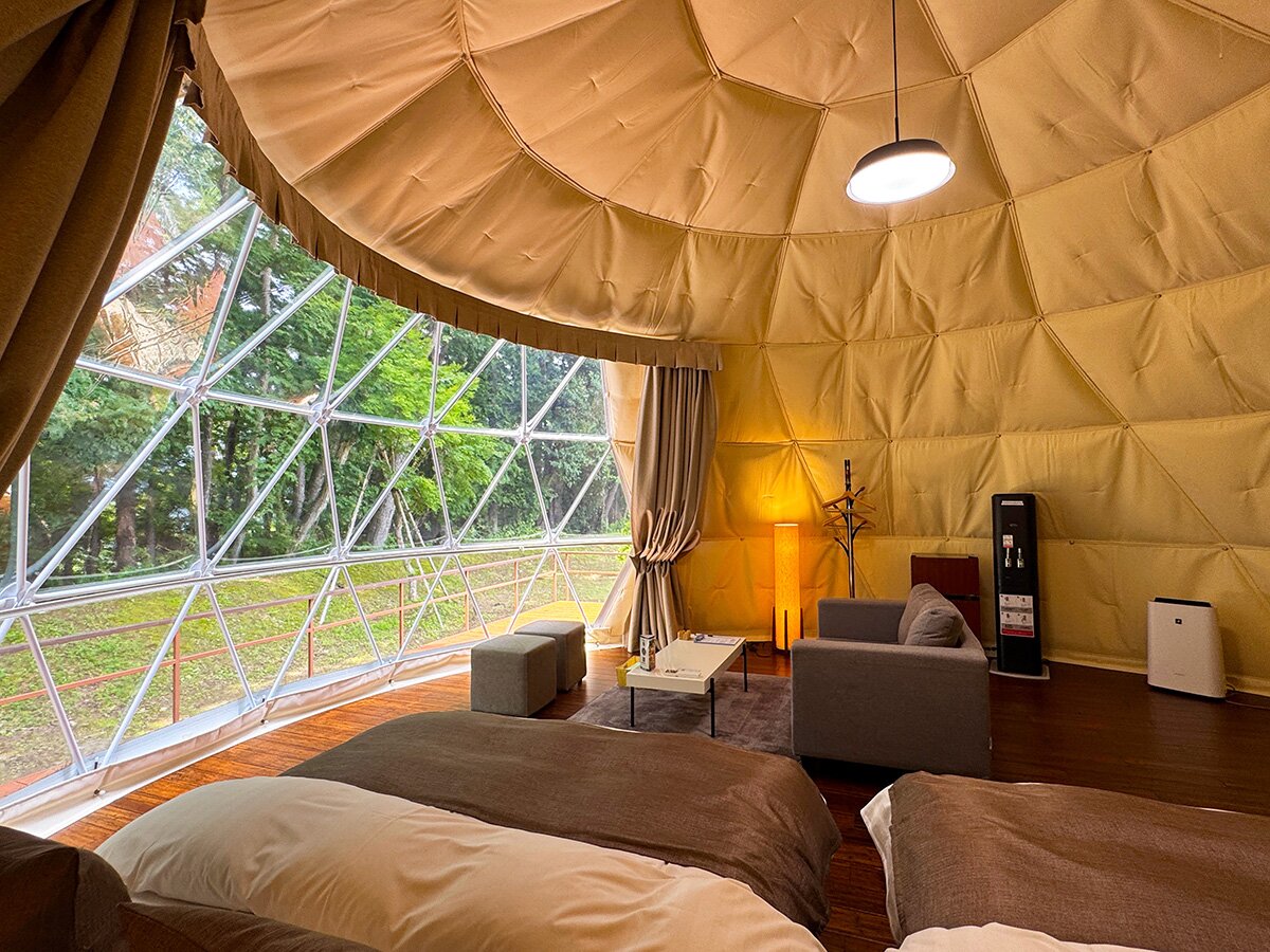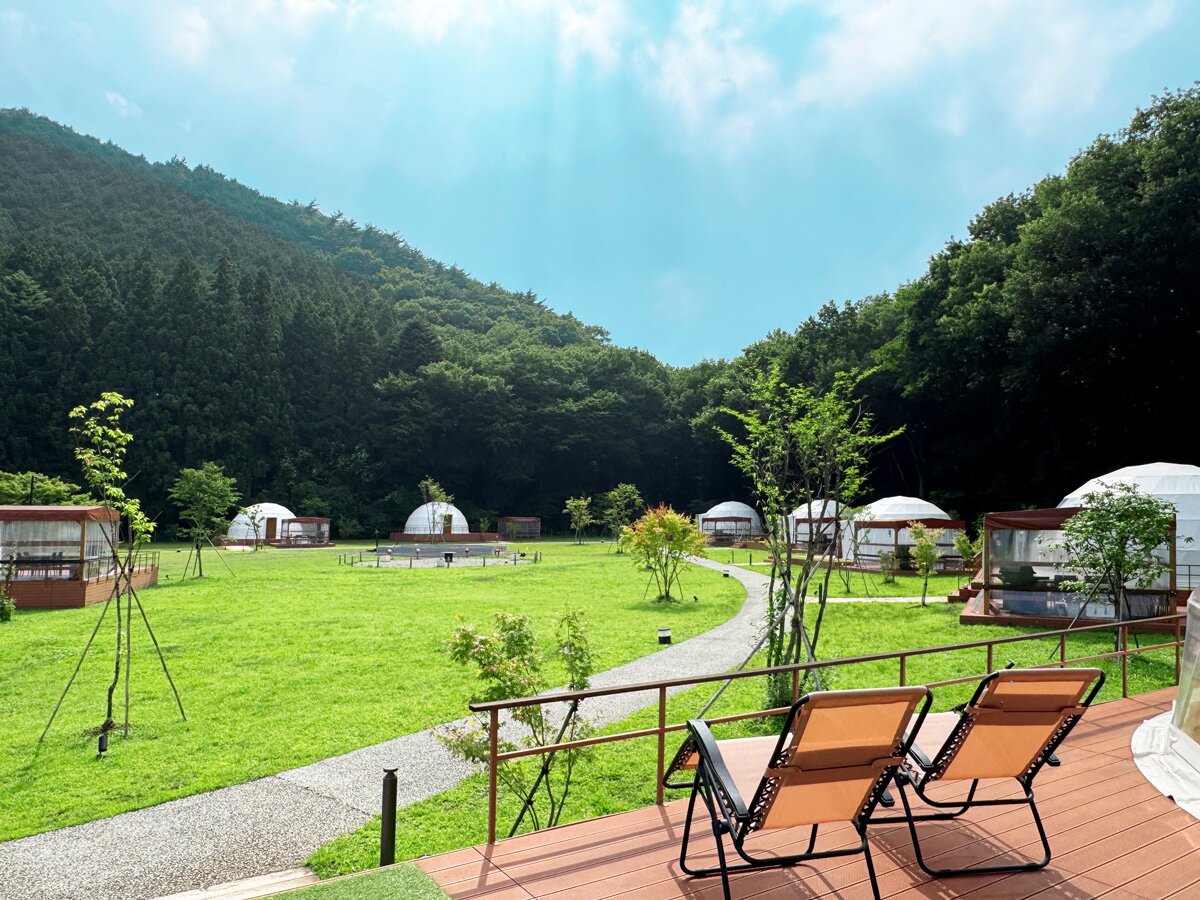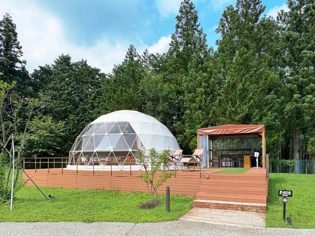 約32,000平米という広大な敷地に18棟のドームテントが点在し、手ぶらで楽しめるバーベキューから本格的なアウトドア体験まで、日常を忘れる特別な時間を提供しています。