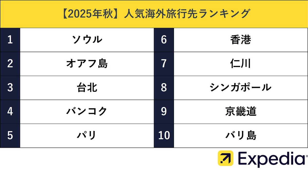 最も注目すべきは韓国の人気ぶりです。第1位の「ソウル」を筆頭に、第7位には「仁川(インチョン)」、第9位に「京畿道(キョンギド)」と、上位10位のうち3エリアが韓国という驚異的な結果となりました。