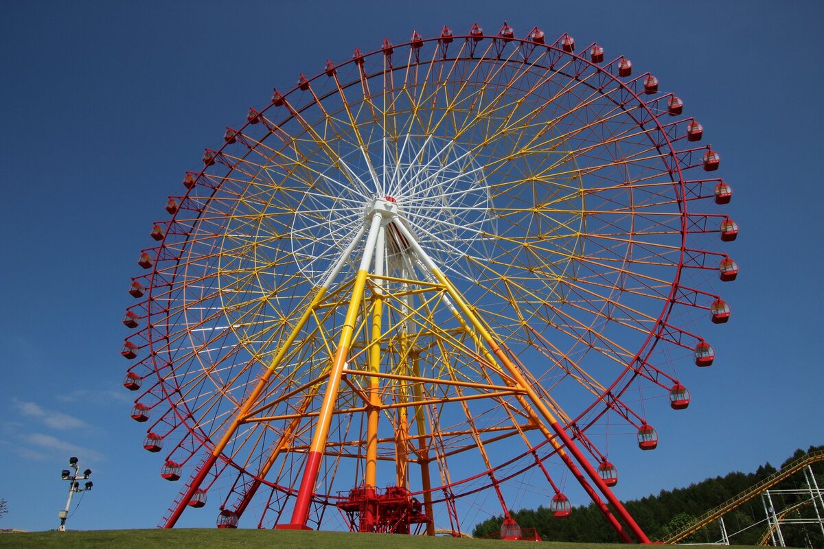 高さ85mを誇る道内最大級の観覧車が、北海道グリーンランドにある「大観覧車」です。約15分で広大な石狩平野や雄大な石狩川を一望でき、晴れた日には遠くの山々まで見渡せる、北海道らしいスケールの大きな絶景が魅力です。