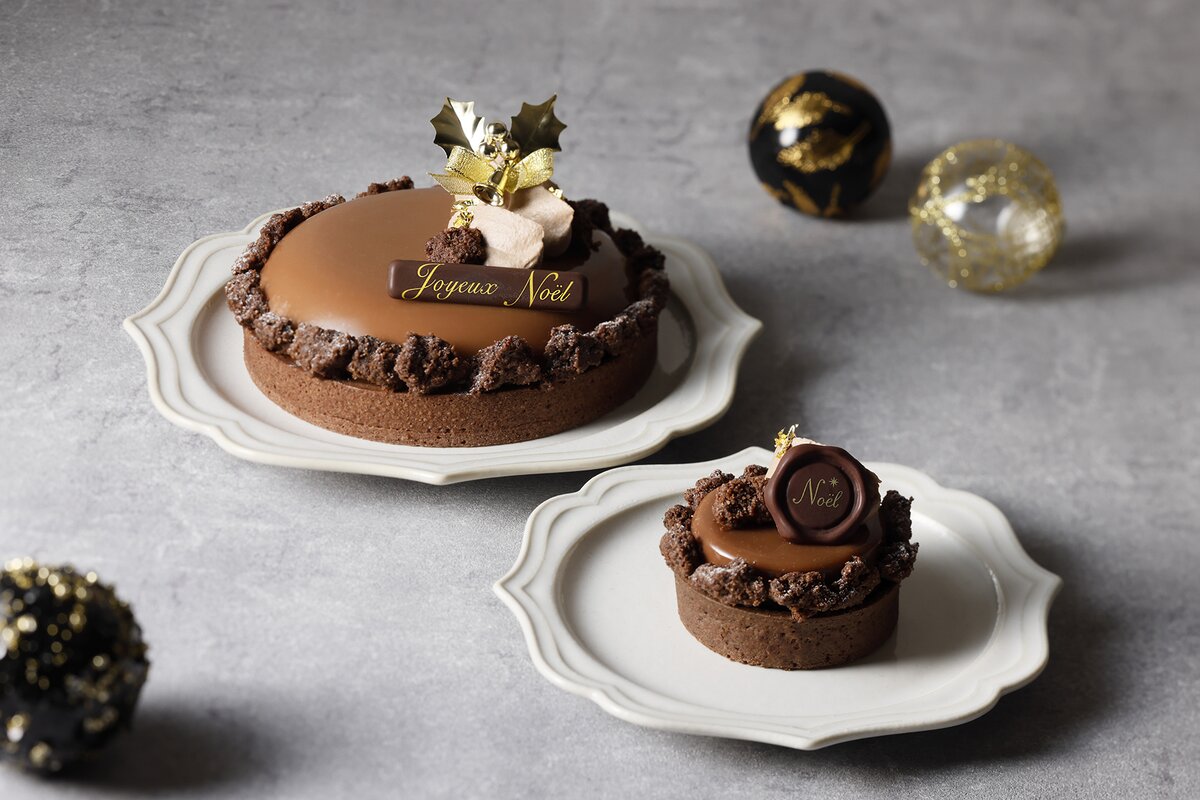 大人のクリスマスを演出したい方におすすめなのが、「ノエル・ショコラ」。フランス・ヴァローナ社のビターチョコレートを使った濃厚なクリームをチョコレートタルトに流し込み、ほろ苦いムースを重ねた本格的な一品です。