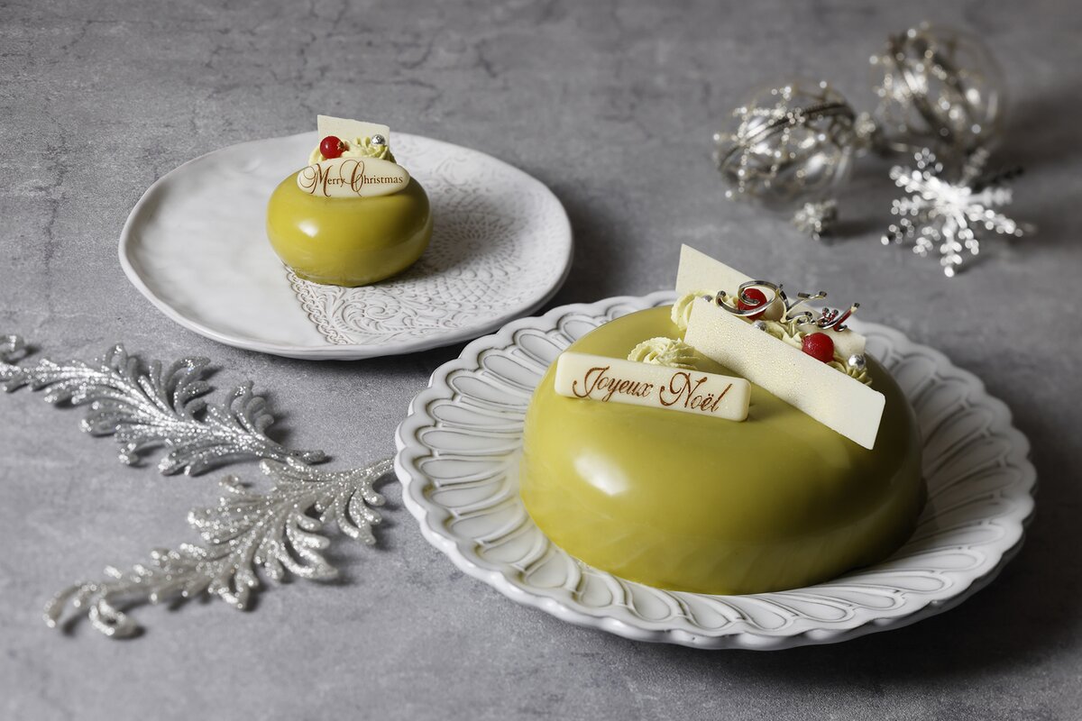 上品な緑の色合いが聖夜のテーブルを彩る「ノエル・ピスターシュ」は、イタリアの名門BABBI社のピスタチオペーストを贅沢に使用したムースが自慢です。
