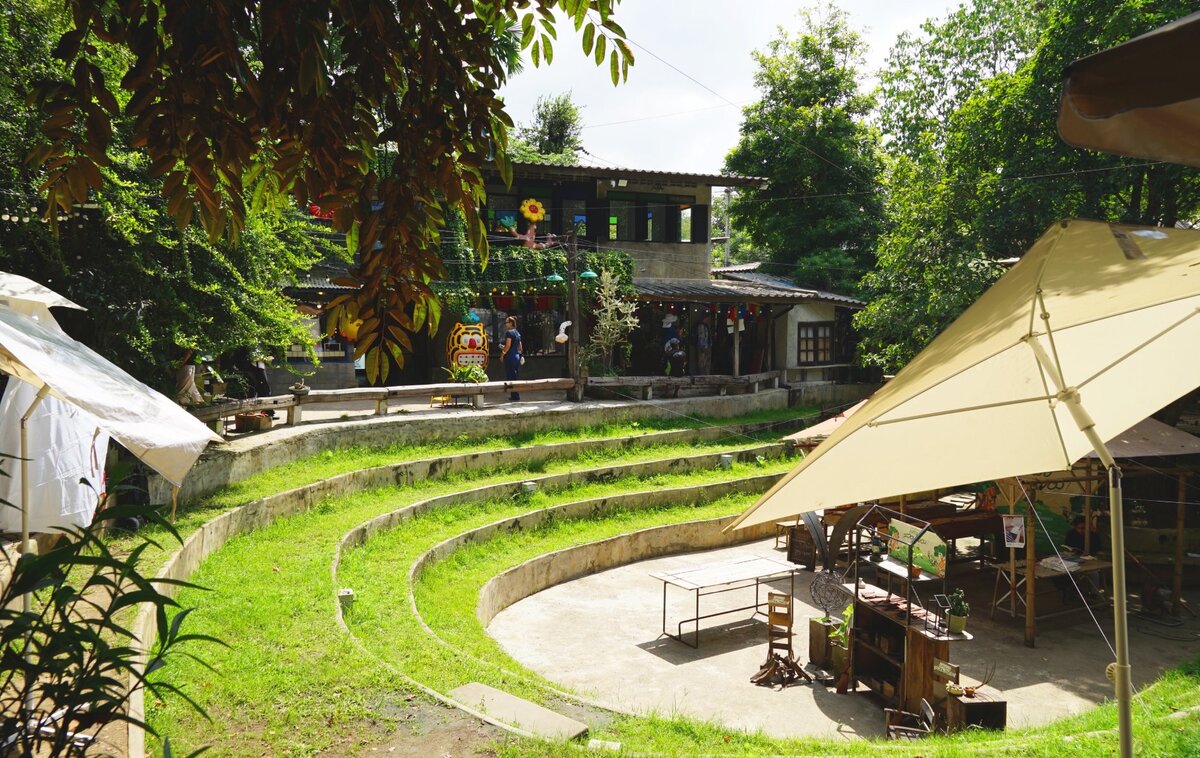 一歩足を踏みれてみると、緑に囲まれた自然溢れる場となっており、多くの地元の方々や外国人観光客がお買い物を楽しんだり、カフェでリラックスしたりと、ゆったり流れる空間が広がっています。