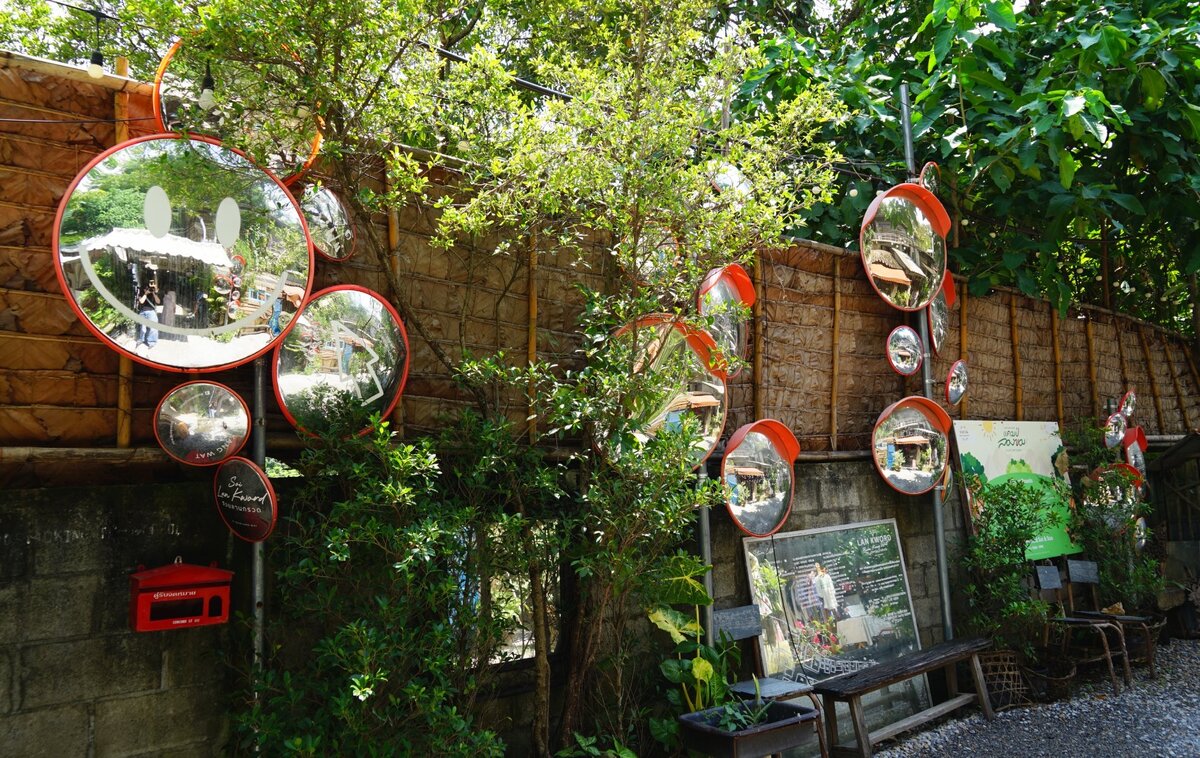 いたるところには映えスポットで溢れています。道路でよく見かけるカーブミラーがたくさん飾られたスポットも。鏡越しに撮影をすれば映えること間違いなしです。若い女性たちを中心に、多くの方々がすてきな写真を撮りながら楽しんでいます。