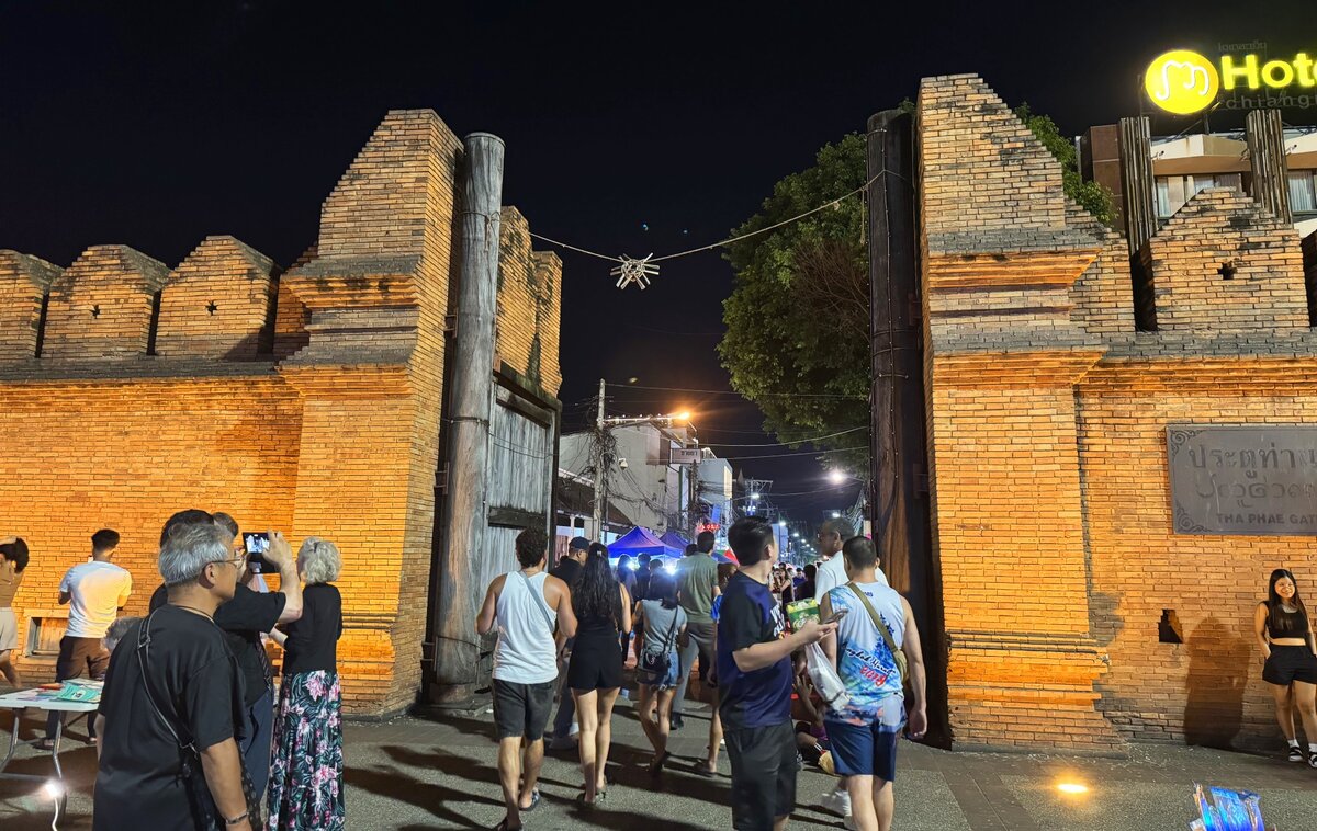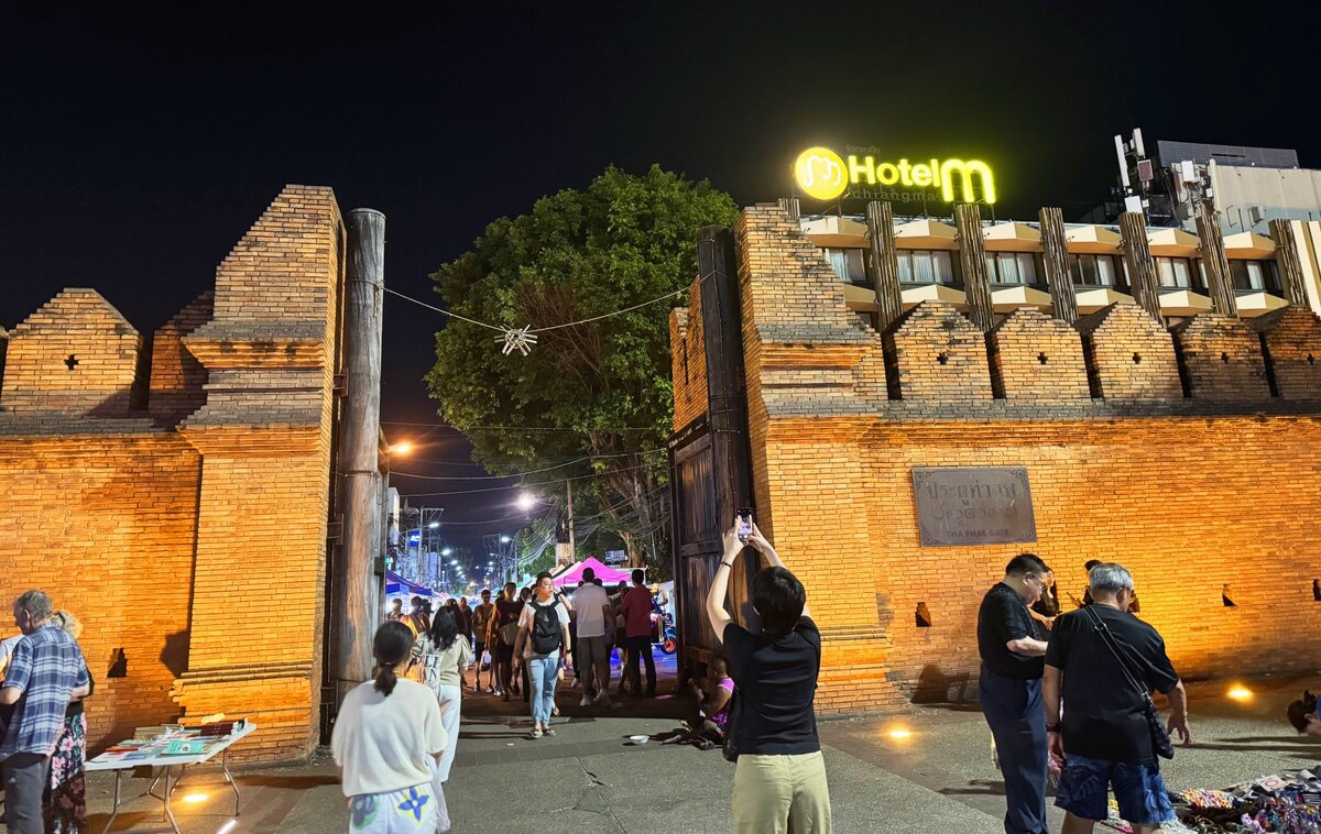 約700年前のラーンナー王朝時代に建設された、かつて旧市街を囲んでいた城壁の主要な門の一つ「ターペー門」から始まりワット・プラシンまでマーケットが続きます。