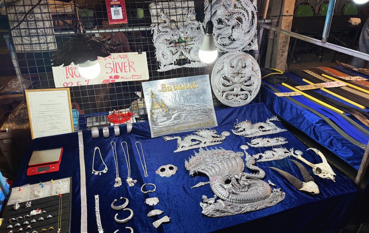 開催地である旧市街南側の「ウアライ通り」は“銀細工の通り”として知られており、銀製品や金属工芸品を販売するお店が多く並んでいます。そのほかには、木彫りの置物やタイパンツといった定番土産やご当地フードの販売も。