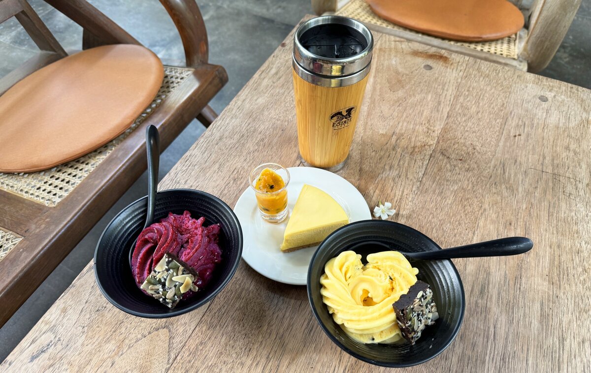 「Cafe Rong Bom」にはコンセントが設置されている席もあるので、コーヒーや紅茶、シェフお手製のフルーツシャーベットやチーズケーキなどをおともに、お仕事もできちゃいます。