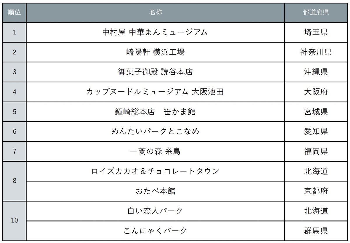 - source:じゃらん 秋に行きたい“おいしい”工場見学ランキング(via PR TIMES)