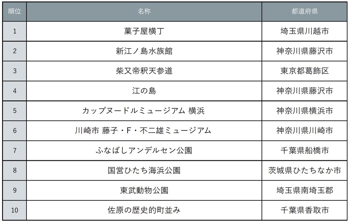 - source:じゃらん 気軽に楽しめる関東の観光スポットランキング(via PR TIMES)