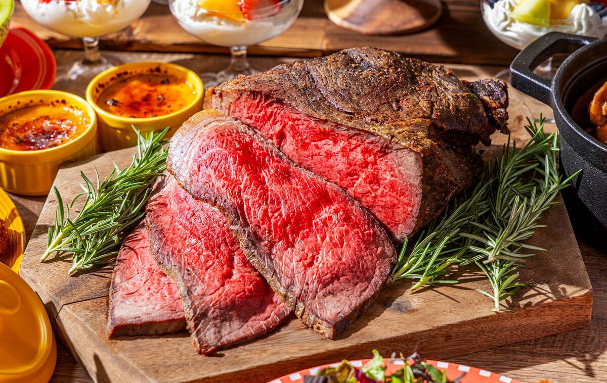 九州産黒毛和牛のローストビーフをその場でカッティング