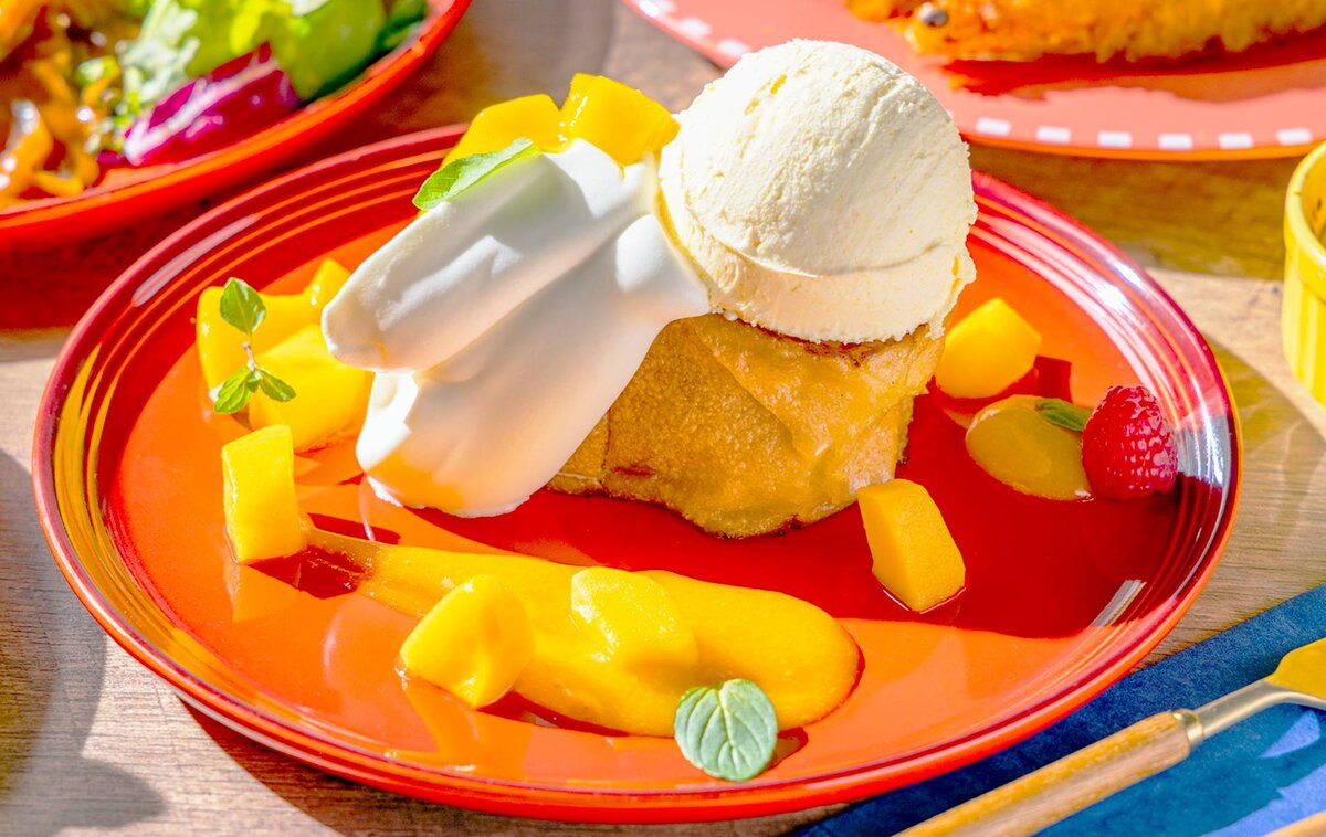 デザートコーナーは、この時期ならではの完熟メロンとマンゴーが主役です。「メロンのレアチーズケーキ」「クランブルとホイップの三層仕立てメロンババロア」「プリン・ア・ラ・モード」から、「北海道ミルクをたっぷり含ませたマンゴーフレンチトースト」「マンゴーメレンゲパイ」まで、日替わりで8品が登場。